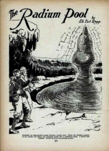 Ed Earl Repp wrote prolifically for the pulps across multiple genres, including westerns and detective stories. He maintained a long career, publishing well into the 1960s, though “The Radium Pool” represents his early science fiction work. On top of that, his background in pulp fiction shows in the breathless pacing. He piles wonder upon wonder without ever pausing for a logical explanation.